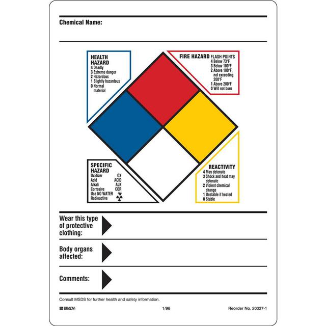 This is manufactured by Brady Corporation. The manufacturer part number is 20327-1LS. It is assigned with possible HTSUS value of 4821.10.4000. The product is rohs3 compliant. Furthermore, the product is 7.000" (177.80mm) wide. Location Information - indoor. The background colour is white. It is a rectangle product with unique specifications. The product is widely employed in facility. In addition, it is reach unaffected. It is shipped in bulk. Its typical moisture sensitivity level is not applicable. Its accurate length is 10.000" (254.00mm). It has a long 4 weeks standard lead time. The product is available in adhesive configuration. The product's body is manufactured from highly durable paper materials. The product brady®, is a highly preferred choice for users. The product is designated with the ear99 code number