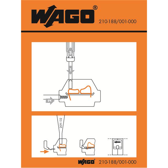This is manufactured by WAGO Corporation. The manufacturer part number is 210-188/001-000. It is assigned with possible HTSUS value of 3919.90.5060. The product is rohs3 compliant. The background colour is orange, white. The product is widely employed in industrial applications. It is shipped in box. Its typical moisture sensitivity level is not applicable. It has a long 12 weeks standard lead time. The product is designated with the ear99 code number