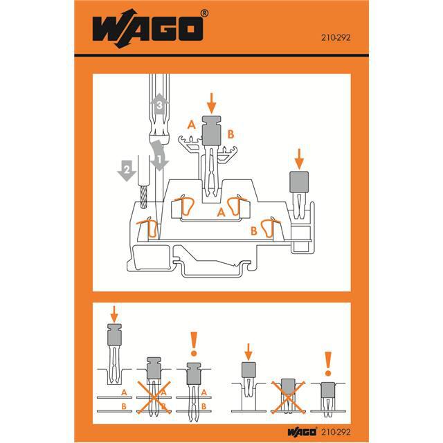 This is manufactured by WAGO Corporation. The manufacturer part number is 210-292. It is assigned with possible HTSUS value of 3919.90.5060. The product is rohs3 compliant. The background colour is orange, white. The product is widely employed in industrial applications. It is shipped in box. Its typical moisture sensitivity level is not applicable. It has a long 12 weeks standard lead time. The product is designated with the ear99 code number