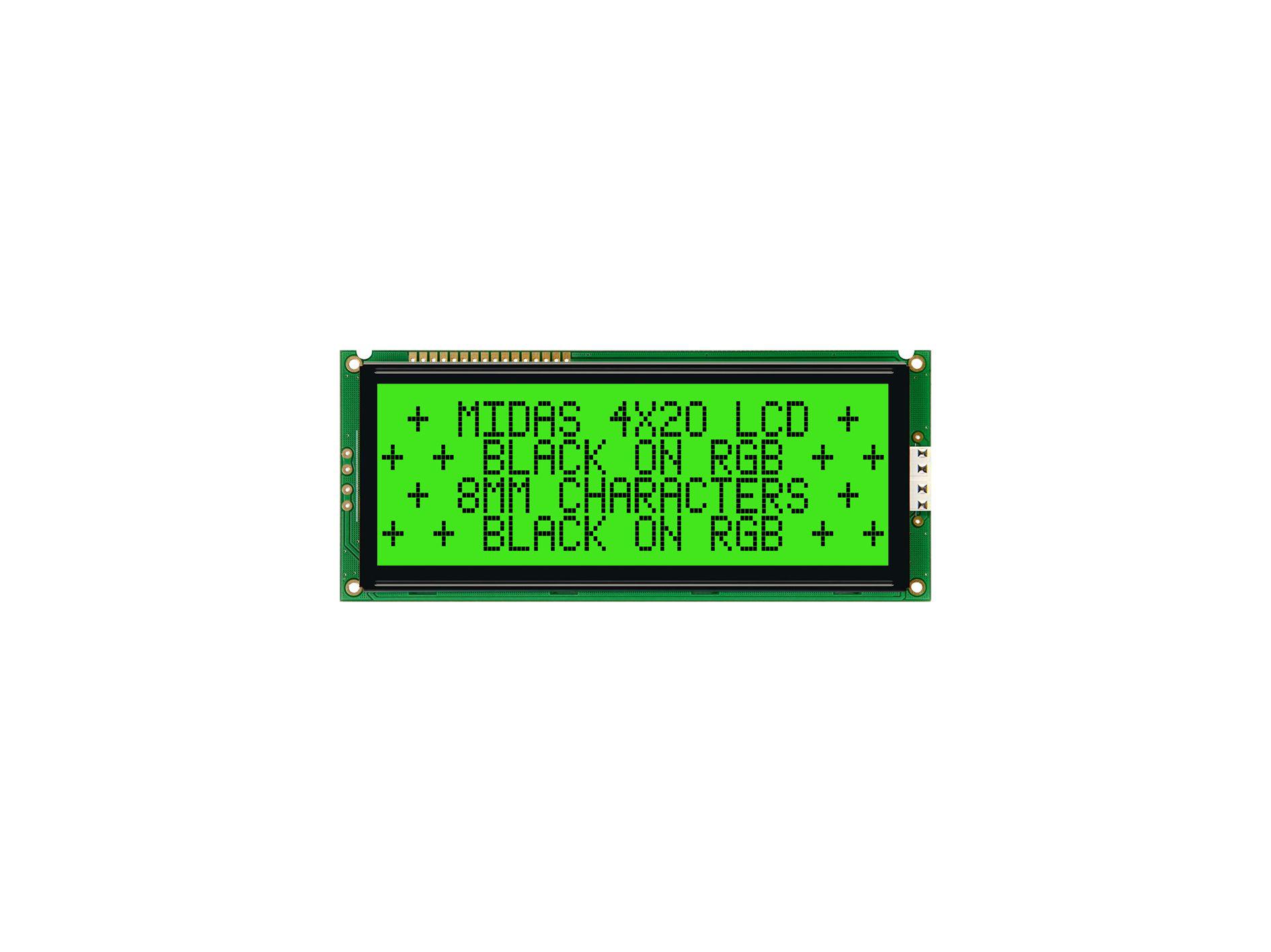 This is LCD LCD Display 4 Rows by 20 Characters manufactured by Midas. The manufacturer part number is MD42008A6W-FPTLRGB. It features a remarkable lcd display.