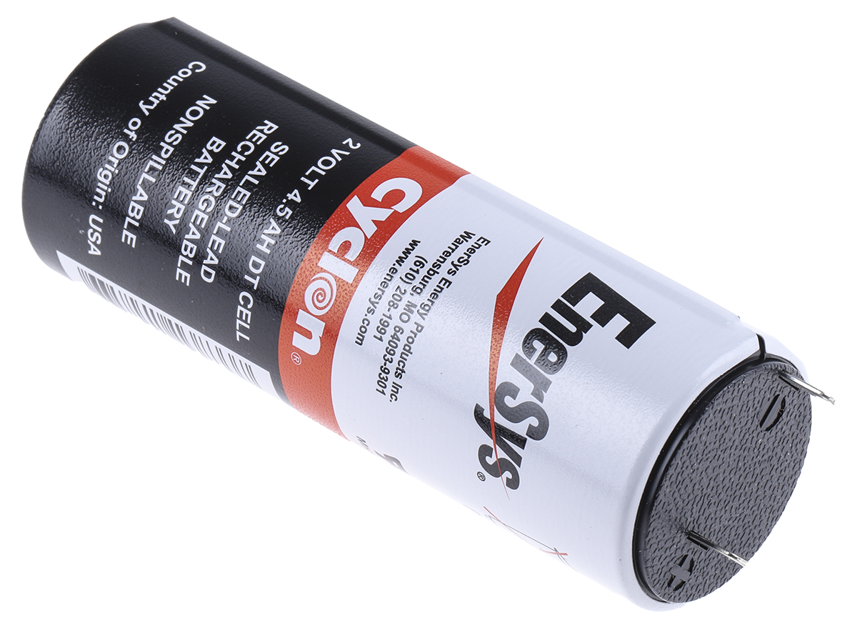 This is Cyclon 2V Lead Acid Battery 4.5Ah manufactured by Enersys. The manufacturer part number is RSACP3705. The module has the capacity of 4.5ah. The given dimensions of the product include 102.9 x 34.3mm. The typical product's weight is 270g. The terminal is a tab type.