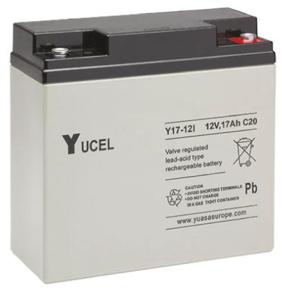 This is Lead Acid Battery - 12V 17Ah manufactured by Yuasa. The manufacturer part number is Y17-12I. The module has the capacity of 17ah. The given dimensions of the product include 167 x 181 x 75mm. The typical product's weight is 6.1kg. The terminal is a threaded insert type.