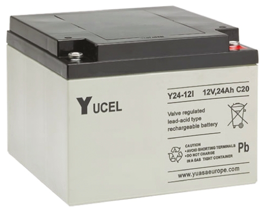 This is Lead Acid Battery - 12V 24Ah manufactured by Yuasa. The manufacturer part number is Y24-12I. The module has the capacity of 24ah. The given dimensions of the product include 125 x 166 x 175mm. The typical product's weight is 9kg. The terminal is a threaded insert type.