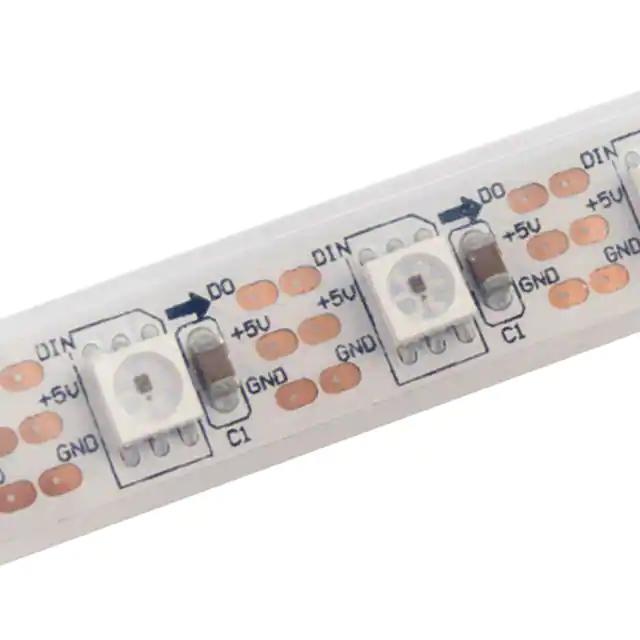 This is manufactured by SparkFun Electronics. The manufacturer part number is COM-12027. It is assigned with possible HTSUS value of 8541.41.0000. The product is rohs compliant. A bespoke product is serial (shift register) interface. The product is available in strip (white) configuration. It is shipped in bulk. Its typical moisture sensitivity level is 1 (unlimited). The product's diameters include 1000.00mm l. The product is available in user defined configuration. It has a classic red, green, blue (rgb) colour. The product is designated with the ear99 code number