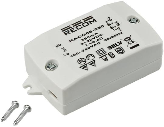 This is Constant Current / Constant Voltage LED Driver 6W 2.5 → 24V 350mA manufactured by Recom. The manufacturer part number is RACD06-350. Additionally, the product is supplied with 1 outputs. The product has a current rating of 0 → 350ma. The product racd06, is a highly preferred choice for users. Moreover, the product has a nominal 264v ac voltage rating. The product is available in enclosed configuration.