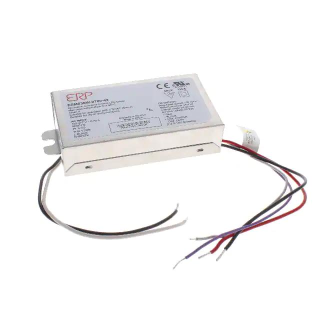 This is manufactured by ERP Power, LLC. The manufacturer part number is ESM030W-0700-42. It is rated with ip20, nema 410. It is assigned with possible HTSUS value of 8504.40.9510. The product is rohs3 compliant. Moreover, it has wire leads terminal style. The product features power and watts of 29 w. The maximum product's output current is 700ma. It is approved by cul, ul, crucs, fc, ce, cb. The product is available in chassis mount configuration. It offers 120vac of minimum input voltage. It comes in constant current configuration. Dimming Info: elv, triac. In addition, it is reach unaffected. It is a highly efficient product with an 87% of high efficiency. Its maximum input voltage is 277vac. Topology includes ac dc converter. It is shipped in box. The product's diameters include 4.20" l x 2.37" w x 0.99" h (106.7mm x 60.3mm x 25.2mm). It has a long 17 weeks standard lead time. Its typical moisture sensitivity level is not applicable. The splendid features of the product include ocp, otp, scp. The typical product's weight is 0.556 lb (252 g). The product esm (30w), is a highly preferred choice for users. The product has -30°c ~ 90°c operating temperature range. Furthermore, the output voltage is 28 ~ 42v. Moreover, it corresponds to esm030w, a base product number of the product. Additionally, the product is supplied with 1 outputs. The product is designated with the ear99 code number