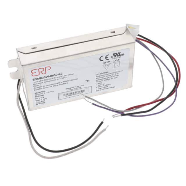 This is manufactured by ERP Power, LLC. The manufacturer part number is ESM030W-0550-42. It is rated with ip20, nema 410. It is assigned with possible HTSUS value of 8504.40.9510. The product is rohs3 compliant. Moreover, it has wire leads terminal style. The product features power and watts of 23 w. The maximum product's output current is 550ma. It is approved by cul, ul, crucs, fc, ce, cb. The product is available in chassis mount configuration. It offers 120vac of minimum input voltage. It comes in constant current configuration. Dimming Info: elv, triac. In addition, it is reach unaffected. It is a highly efficient product with an 87% of high efficiency. Its maximum input voltage is 277vac. Topology includes ac dc converter. It is shipped in box. The product's diameters include 4.20" l x 2.37" w x 0.99" h (106.7mm x 60.3mm x 25.2mm). It has a long 17 weeks standard lead time. Its typical moisture sensitivity level is not applicable. The splendid features of the product include ocp, otp, scp. The typical product's weight is 0.556 lb (252 g). The product esm (30w), is a highly preferred choice for users. The product has -30°c ~ 90°c operating temperature range. Furthermore, the output voltage is 28 ~ 42v. Moreover, it corresponds to esm030w, a base product number of the product. Additionally, the product is supplied with 1 outputs. The product is designated with the ear99 code number
