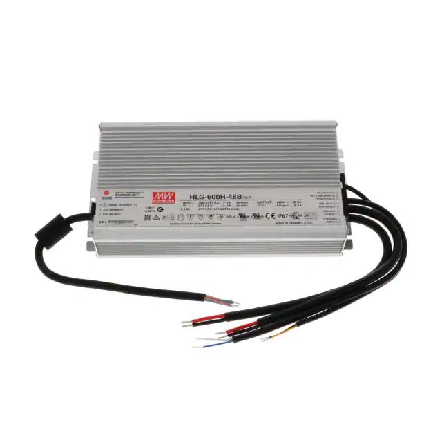 This is manufactured by Mean Well USA Inc.. The manufacturer part number is HLG-600H-48B. It is rated with ip67. It is assigned with possible HTSUS value of 8504.40.9530. The product is rohs3 compliant. Moreover, it has wire leads terminal style. The product features power and watts of 600 w. The maximum product's output current is 12.5a. It is approved by cb, ccc, ce, curus, enec, pse. It offers 90vac of minimum input voltage. It comes in constant current, voltage configuration. Dimming Info: analog, pwm. In addition, it is reach unaffected. It is a highly efficient product with an 96% of high efficiency. Its maximum input voltage is 305vac. Topology includes ac dc converter. It is shipped in box. The product's diameters include 9.97" l x 5.67" w x 1.91" h (253.2mm x 144.0mm x 48.5mm). It has a long 23 weeks standard lead time. 3.75 kv of isolation voltage. Its typical moisture sensitivity level is 1 (unlimited). The splendid features of the product include remote on/off, ocp, otp, ovp, scp. The product is available in chassis mount configuration. The product hlg-600h (600w), is a highly preferred choice for users. The product has -40°c ~ 90°c operating temperature range. Furthermore, the output voltage is 24 ~ 48v. Moreover, it corresponds to hlg-600h, a base product number of the product. Additionally, the product is supplied with 1 outputs. The product is designated with the ear99 code number