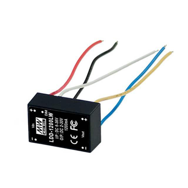 This is manufactured by Mean Well USA Inc.. The manufacturer part number is LDD-1200LW. It is rated with ip67. It is assigned with possible HTSUS value of 8504.40.9580. The product is rohs3 compliant. Moreover, it has wire leads terminal style. The product has -40°c ~ 85°c operating temperature range. The maximum product's output current is 1.2a. It is approved by ce. It offers 6v of minimum input voltage. It comes in constant current configuration. Dimming Info: pwm. In addition, it is reach unaffected. It is a highly efficient product with an 95% of high efficiency. Its maximum input voltage is 36v. Topology includes buck. It is shipped in tray. The product's diameters include 1.25" l x 0.80" w x 0.48" h (31.8mm x 20.3mm x 12.2mm). Its typical moisture sensitivity level is 1 (unlimited). The splendid features of the product include remote on/off, otp, scp. The product is available in chassis mount configuration. The product ldd-l, is a highly preferred choice for users. Furthermore, the output voltage is 2 ~ 30v. Moreover, it corresponds to ldd-1200, a base product number of the product. Additionally, the product is supplied with 1 outputs. The product is designated with the ear99 code number