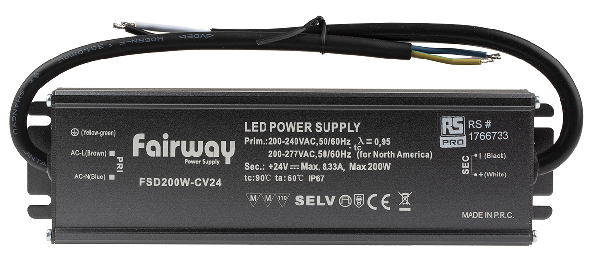 This is AC200-277V 24VDC 8.33A 200W IP67 manufactured by RS Pro. The manufacturer part number is 176-6733. Additionally, the product is supplied with 1 outputs. Moreover, the product has a nominal 200 → 277v ac voltage rating. Moreover, the product allow the output of 24 v dc @ 8.33 a. The product is available in enclosed configuration.