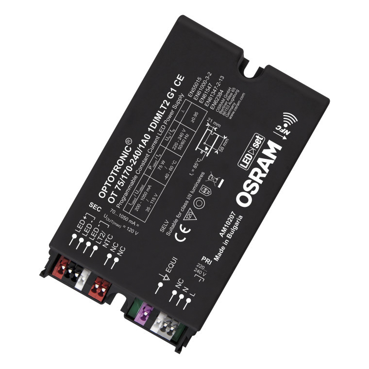 This is  Constant Current LED Driver 75W 35 → 115V 70 → 1050mA OPTOTRONIC Series manufactured by Osram. The manufacturer part number is 4052899541092. Additionally, the product is supplied with 1 outputs. The product has a current rating of 360ma. The product optotronic nfc, is a highly preferred choice for users. Moreover, the product has a nominal 220 → 240 v, 220 → 277 v voltage rating. Moreover, the product allow the output of 35 → 115 v dc @ 1050 ma.