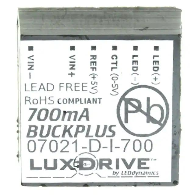 This is manufactured by LEDdynamics Inc.. The manufacturer part number is 7021-D-I-700. It is assigned with possible HTSUS value of 9405.42.8440. Additionally, the product is supplied with 1 outputs. The product features power and watts of 22 w. The maximum product's output current is 700ma. Moreover, the product comes in [Package/ Case]. The product is available in through hole configuration. It offers 7v of minimum input voltage. It comes in constant current configuration. Dimming Info: analog. It is a highly efficient product with an 95% of high efficiency. Its maximum input voltage is 32v. Topology includes buck. It is shipped in bulk. The product's diameters include 0.83" l x 0.83" w x 0.43" h (21.1mm x 21.1mm x 10.9mm). Its typical moisture sensitivity level is 1 (unlimited). The splendid features of the product include remote on/off, scp. The product buckplus™ 7021, is a highly preferred choice for users. The product has -40°c ~ 80°c operating temperature range. Furthermore, the output voltage is 32v (max). The product is designated with the ear99 code number