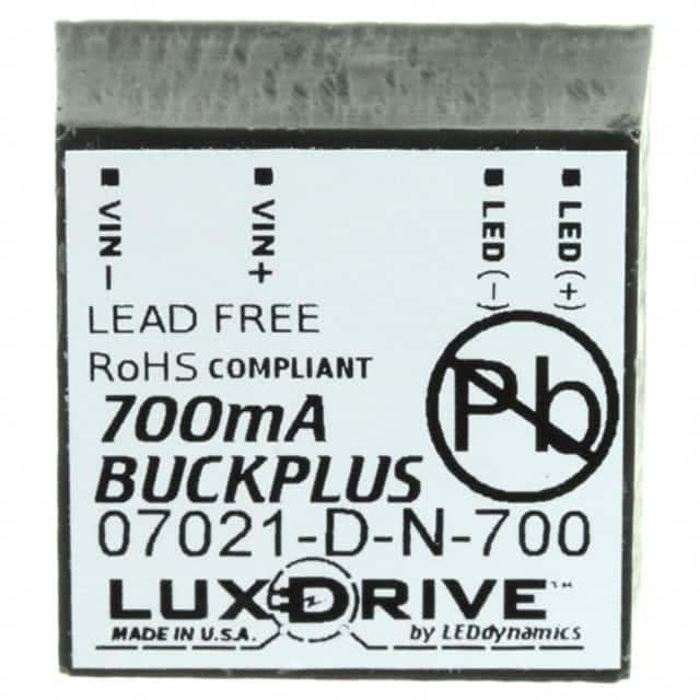 This is manufactured by LEDdynamics Inc.. The manufacturer part number is 7021-D-N-700. It is assigned with possible HTSUS value of 9405.42.8440. Additionally, the product is supplied with 1 outputs. The product features power and watts of 22 w. The maximum product's output current is 700ma. Moreover, the product comes in [Package/ Case]. The product is available in through hole configuration. It offers 5v of minimum input voltage. It comes in constant current configuration. It is a highly efficient product with an 95% of high efficiency. Its maximum input voltage is 32v. Topology includes buck. It is shipped in bulk. The product's diameters include 0.83" l x 0.83" w x 0.43" h (21.1mm x 21.1mm x 10.9mm). Its typical moisture sensitivity level is 1 (unlimited). The splendid features of the product include remote on/off, scp. The product buckplus™ 7021, is a highly preferred choice for users. The product has -40°c ~ 80°c operating temperature range. Furthermore, the output voltage is 32v (max). The product is designated with the ear99 code number
