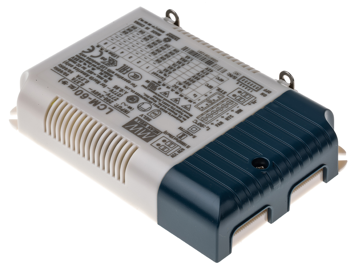 This is Constant Current 1-10 V PWM LED Driver 60.3W 2 → 90V 1.05 A 1.4 A 500 mA 600 mA 700 mA manufactured by Mean Well. The manufacturer part number is LCM-60RS. Moreover, the product has a nominal 180 → 295 v ac, 254 → 417 v dc voltage rating.