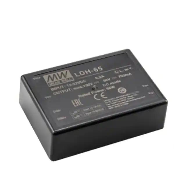 This is manufactured by MEAN WELL USA Inc.. The manufacturer part number is LDH-65-1050. It is assigned with possible HTSUS value of 8504.40.9520. The product is rohs3 compliant. The product features power and watts of 63 w. The maximum product's output current is 1.05a. It is approved by ce, eac. Moreover, the product comes in [Package/ Case]. It offers 9.5v of minimum input voltage. It comes in constant current configuration. Dimming Info: analog, pwm. In addition, it is reach unaffected. It is a highly efficient product with an 95.5% of high efficiency. Its maximum input voltage is 32v. Topology includes boost. It is shipped in box. The product's diameters include 2.95" l x 2.09" w x 0.89" h (75.0mm x 53.0mm x 22.7mm). It has a long 23 weeks standard lead time. Its typical moisture sensitivity level is not applicable. The splendid features of the product include ovp, scp. The product is available in through hole configuration. The product ldh-65 (65w), is a highly preferred choice for users. The product has -40°c ~ 60°c operating temperature range. Furthermore, the output voltage is 12.5 ~ 60v. Moreover, it corresponds to ldh-65, a base product number of the product. Additionally, the product is supplied with 1 outputs. The product is designated with the ear99 code number