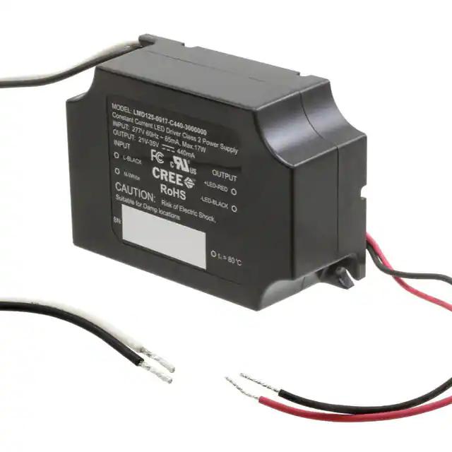 This is manufactured by CreeLED, Inc.. The manufacturer part number is LMD125-0017-C440-3000000. It is rated with ip20, nema 410. It is assigned with possible HTSUS value of 8504.40.9510. The product is rohs compliant. Moreover, it has wire leads terminal style. The product features power and watts of 15 w. The maximum product's output current is 440ma. It is approved by ce, cqc, culus. The product is available in chassis mount configuration. It offers 249vac of minimum input voltage. It comes in constant current configuration. In addition, it is reach unaffected. It is a highly efficient product with an 84% of high efficiency. Its maximum input voltage is 305vac. Topology includes ac dc converter. It is shipped in tray. The product's diameters include 3.17" l x 2.20" w x 1.16" h (80.4mm x 56.0mm x 29.5mm). Its typical moisture sensitivity level is 1 (unlimited). The typical product's weight is 0.251 lb (113.85 g). The product lmd125, is a highly preferred choice for users. The product has 0°c ~ 80°c operating temperature range. Furthermore, the output voltage is 21 ~ 35v. Moreover, it corresponds to lmd125, a base product number of the product. Additionally, the product is supplied with 1 outputs. The product is designated with the ear99 code number