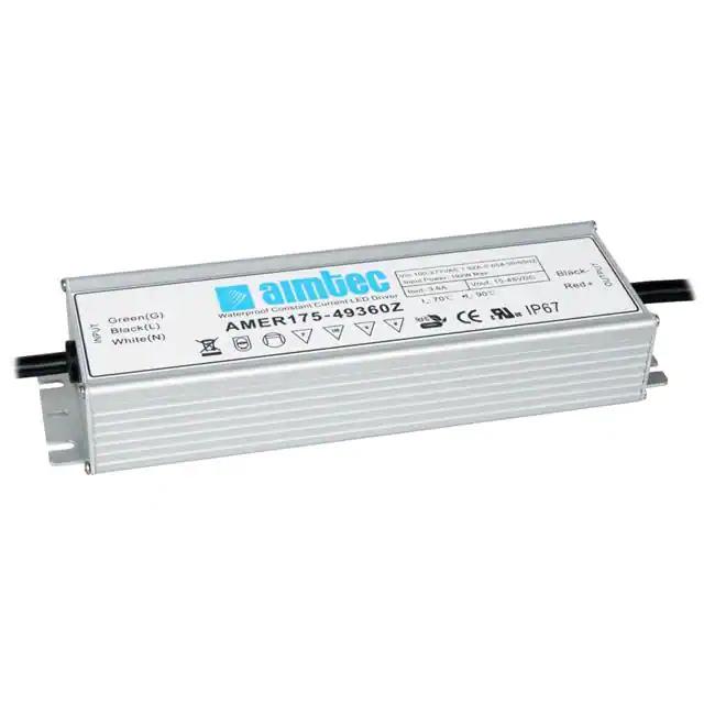 This is manufactured by aimtec. The manufacturer part number is AMER175-48360Z. It is rated with ip65, ip67. It is assigned with possible HTSUS value of 8504.40.9530. The product is rohs3 compliant. Moreover, it has wire leads terminal style. The product features power and watts of 172.8 w. The maximum product's output current is 3.6a. It is approved by ce. The product is available in chassis mount configuration. It offers 90v of minimum input voltage. It comes in constant current configuration. It is a highly efficient product with an 92% of high efficiency. Its maximum input voltage is 305v. Topology includes ac dc converter. It is shipped in box. The product's diameters include 2.68" l x 9.02" w x 1.53" h (68.0mm x 229.0mm x 38.8mm). 3.75 kv of isolation voltage. Its typical moisture sensitivity level is 1 (unlimited). The splendid features of the product include otp, scp, uvlo. The typical product's weight is 2.4 lbs (1.1 kg). The product amer175-z, is a highly preferred choice for users. The product has -40°c ~ 70°c operating temperature range. Furthermore, the output voltage is 15 ~ 48v. Moreover, it corresponds to amer175, a base product number of the product. Additionally, the product is supplied with 1 outputs. The product is designated with the ear99 code number