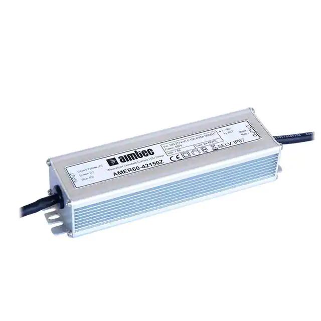 This is manufactured by aimtec. The manufacturer part number is AMER60-42160Z. It is rated with ip65, ip67. It is assigned with possible HTSUS value of 8504.40.9520. The product is rohs3 compliant. Moreover, it has wire leads terminal style. The product features power and watts of 67.2 w. The maximum product's output current is 1.6a. It is approved by ce. The product is available in chassis mount configuration. It offers 90v of minimum input voltage. It comes in constant current configuration. It is a highly efficient product with an 90% of high efficiency. Its maximum input voltage is 305v. Topology includes ac dc converter. It is shipped in box. The product's diameters include 1.91" l x 1.31" w x 6.89" h (48.6mm x 175.0mm x 33.3mm). 3.75 kv of isolation voltage. Its typical moisture sensitivity level is 1 (unlimited). The splendid features of the product include scp. The typical product's weight is 1.014 lb (460.00 g). The product amer60-z, is a highly preferred choice for users. The product has -40°c ~ 60°c operating temperature range. Furthermore, the output voltage is 24 ~ 42v. Moreover, it corresponds to amer60, a base product number of the product. Additionally, the product is supplied with 1 outputs. The product is designated with the ear99 code number