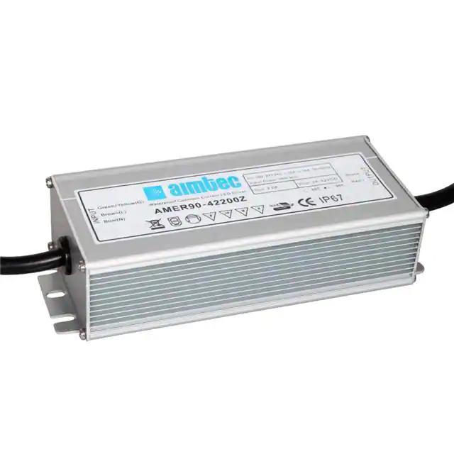 This is manufactured by aimtec. The manufacturer part number is AMER90-56160Z. It is rated with ip67. It is assigned with possible HTSUS value of 8504.40.9520. The product is rohs3 compliant. Moreover, it has wire leads terminal style. The product features power and watts of 89.6 w. The maximum product's output current is 1.6a. The product is available in chassis mount configuration. It offers 90v of minimum input voltage. It comes in constant current configuration. It is a highly efficient product with an 90% of high efficiency. Its maximum input voltage is 305v. Topology includes ac dc converter. It is shipped in box. The product's diameters include 2.70" l x 6.93" w x 1.65" h (68.7mm x 176.0mm x 42.0mm). 3.75 kv of isolation voltage. Its typical moisture sensitivity level is 1 (unlimited). The splendid features of the product include otp, scp, uvlo. The typical product's weight is 1.874 lb (850 g). The product amer90-z, is a highly preferred choice for users. The product has -40°c ~ 60°c operating temperature range. Furthermore, the output voltage is 40 ~ 56v. Moreover, it corresponds to amer90, a base product number of the product. Additionally, the product is supplied with 1 outputs. The product is designated with the ear99 code number
