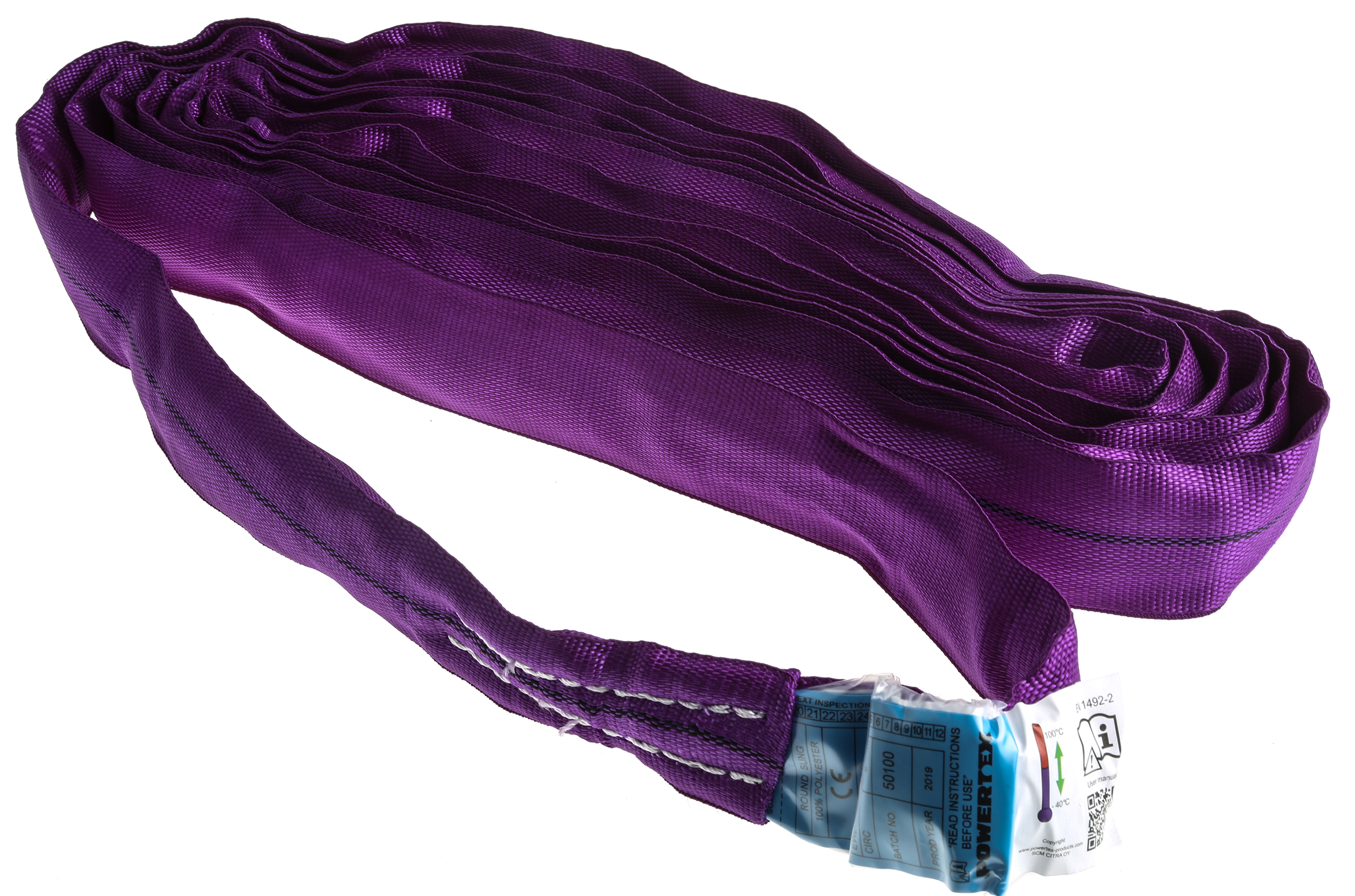 This is Flat Length 3m Violet Round Sling 1T manufactured by RS Pro. The manufacturer part number is 124-4857. Its accurate length is 3m.