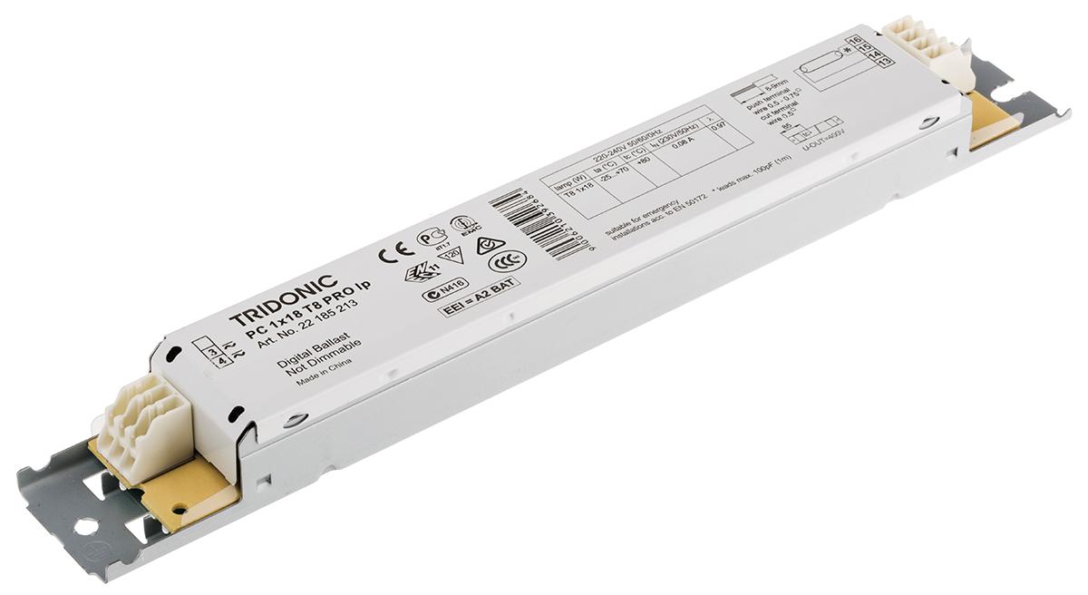This is 18 W Electronic Fluorescent Lighting Ballast 220 → 240 V manufactured by Tridonic. The manufacturer part number is 22185213. Moreover, the product has a nominal 220 → 240 v voltage rating. In addition, the height is 21mm. Furthermore, the product is 30 mm wide. Its accurate length is 230 mm. Whereas, the minimum operating temperature of the product is -25°c. It has a maximum operating temperature of +70°c.