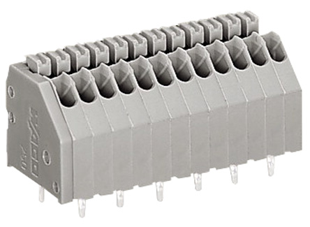 This is 250 Series Female 12 Pole 12 Way PCB Terminal Strip PCB Mount manufactured by Wago. The manufacturer part number is 250-412. The product has a current rating of 2 (csa) a, 4 (iec/en 60664-1) a, 5 (ul) a. The product is available in pcb mount configuration. Moreover, the product has a nominal 320 v voltage rating. In addition, female is the available "Gender" of the product. The product 250, is a highly preferred choice for users. It comes in pcb terminal strip configuration. The product is made from sturdy copper alloy materials.