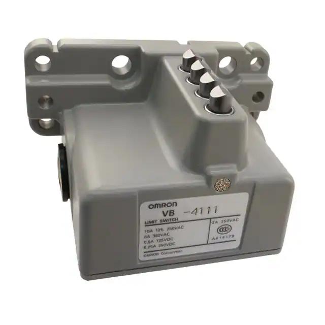 This is manufactured by Omron Automation and Safety. The manufacturer part number is VB-4111. It has a 1500gf of operating force. It is assigned with possible HTSUS value of 8536.50.9055. The product is rohs compliant. The product offers long-lasting services of 300,000 cycles. Moreover, it has screw terminal terminal style. 125 v of DC voltage rating. The product has -10°c ~ 80°c operating temperature range. The product also provide mechanical stability with 5,000,000 cycles. Whereas, it also has a 0.020" (0.5mm) of differential travel. The product exhibits 125 v of AC voltage rating. The given overtravel figures include 0.138" (3.5mm). While the pretravel value is 0.060" (1.5mm). It is shipped in bulk. It is designed as a on-mom switching function. It has the given operating position of 1.024" (26.0mm). Its typical moisture sensitivity level is 1 (unlimited). It has an integral spdt x 4 circuit. It has a long 2 weeks standard lead time. Additionally, the product's output is 10a (ac), 600ma (dc) It is IP rated with ip67 - dust tight, waterproof. The product is available in chassis mount configuration. The product vb, is a highly preferred choice for users. The product carries bevel plunger actuator. It carries a release force of 500gf. The product is designated with the ear99 code number