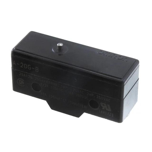 This is manufactured by Omron Automation and Safety. The manufacturer part number is A-20G-B. It has a 400 ~ 625gf of operating force. It is assigned with possible HTSUS value of 8536.50.9040. The product is rohs compliant. The product offers long-lasting services of 500,000 cycles. Moreover, it has screw terminal terminal style. 30 v of DC voltage rating. The product has -25°c ~ 80°c operating temperature range. The product also provide mechanical stability with 1,000,000 cycles. Whereas, it also has a 0.008" (0.2mm) of differential travel. The product exhibits 125 v of AC voltage rating. The given overtravel figures include 0.010" (0.25mm). While the pretravel value is 0.051" (1.3mm). It is shipped in bulk. It is designed as a on-mom switching function. It has the given operating position of 0.640" (16.3mm). Its typical moisture sensitivity level is 1 (unlimited). It has an integral spdt circuit. It has a long 10 weeks standard lead time. Additionally, the product's output is 20a (ac), 6a (dc) It is IP rated with ip00. The product is available in chassis mount configuration. The product a, is a highly preferred choice for users. The product carries round (pin plunger) actuator. It carries a release force of 285gf. Moreover, it corresponds to a-20g, a base product number of the product. The product is designated with the ear99 code number