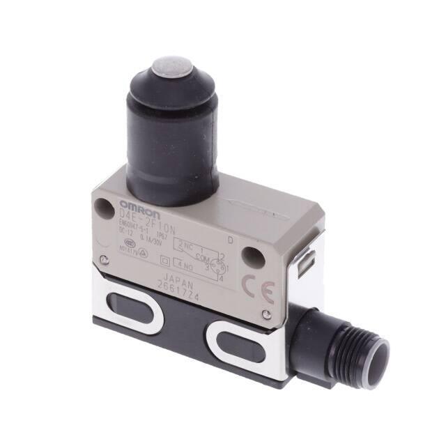This is manufactured by Omron Automation and Safety. The manufacturer part number is D4E-2F10N. It has a 1200gf of operating force. It is assigned with possible HTSUS value of 8536.50.9055. The product is rohs non-compliant. Moreover, it has connector terminal style. 30 v of DC voltage rating. The product has -10°c ~ 80°c operating temperature range. The product also provide mechanical stability with 10,000,000 cycles. Whereas, it also has a 0.004" (0.1mm) of differential travel. The product exhibits 125 v of AC voltage rating. The given overtravel figures include 0.118" (3.0mm). While the pretravel value is 0.060" (1.5mm). It is shipped in bulk. It is designed as a on-mom switching function. It has the given operating position of 1.180" (30.0mm). Its typical moisture sensitivity level is 1 (unlimited). It has an integral spdt circuit. It has a long 26 weeks standard lead time. Additionally, the product's output is 100ma (ac/dc) It is IP rated with ip67 - dust tight, waterproof. The product is available in chassis mount configuration. The product d4e-xn, is a highly preferred choice for users. The product carries round (pin plunger) actuator. It carries a release force of 500gf. Moreover, it corresponds to d4e-2f10, a base product number of the product. The product is designated with the ear99 code number