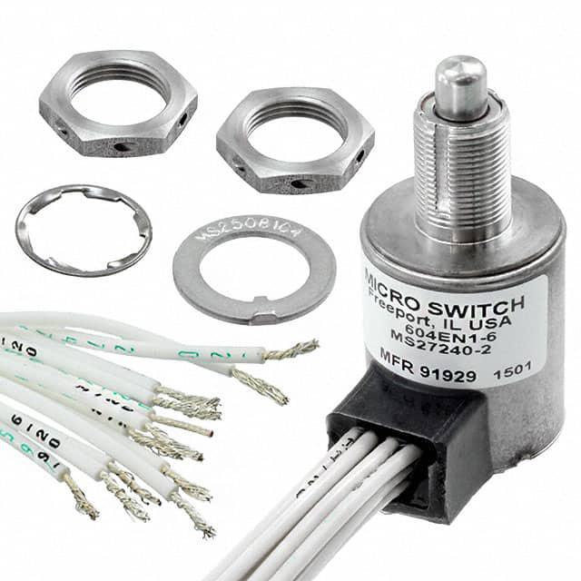 This is manufactured by Honeywell Sensing and Productivity Solutions. The manufacturer part number is 604EN1-6. It has a 2722 ~ 5443gf of operating force. It is assigned with possible HTSUS value of 8536.50.9055. The product is rohs compliant. The product offers long-lasting services of 25,000 cycles. Moreover, it has wire leads terminal style. 28 v of DC voltage rating. The product has -54°c ~ 85°c operating temperature range. The product also provide mechanical stability with 25,000 cycles. Whereas, it also has a 0.020" (0.5mm) of differential travel. The given overtravel figures include 0.125" (3.2mm). While the pretravel value is 0.040" (1.0mm). It is shipped in bulk. It is designed as a on-mom switching function. Its typical moisture sensitivity level is 1 (unlimited). It has an integral 4pdt circuit. It has a long 18 weeks standard lead time. Additionally, the product's output is 7a (dc) The splendid features of the product include cable length 6', sealed. The product is available in panel mount configuration. The product en, is a highly preferred choice for users. The product carries round (pin plunger) actuator. It carries a release force of 1814gf. Moreover, it corresponds to 604en, a base product number of the product. The product is designated with the ear99 code number