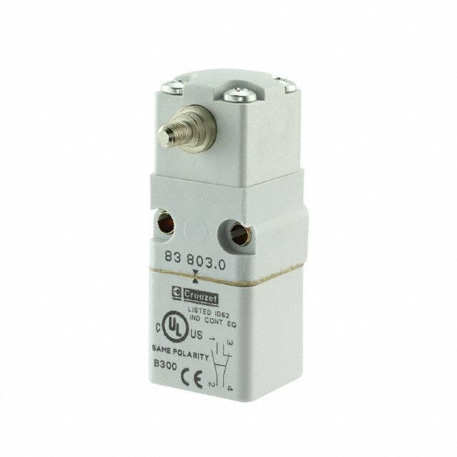 This is manufactured by Crouzet. The manufacturer part number is 83803051. It has a 7.200gf of operating force. It is assigned with possible HTSUS value of 8536.50.9055. The product is rohs compliant. Moreover, it has plug in terminal style. The product has -20°c ~ 70°c operating temperature range. The product also provide mechanical stability with 10,000,000 cycles. Whereas, it also has a 6° of differential travel. The product exhibits 250 v of AC voltage rating. In addition, it is reach unaffected. It is shipped in bulk. It is designed as a on-mom switching function. Its typical moisture sensitivity level is 1 (unlimited). It has an integral spdt (db/dm) circuit. Additionally, the product's output is 5a (ac) It is IP rated with ip55 - dust protected, water resistant. The product is available in chassis mount configuration. The product 83800, is a highly preferred choice for users. The product carries side rotary - no lever actuator. The product is designated with the ear99 code number