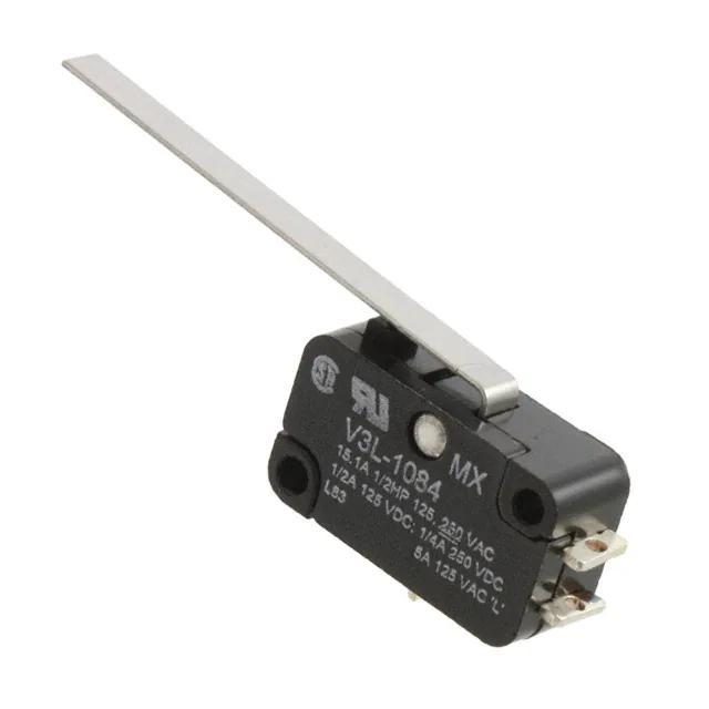 This is manufactured by Honeywell Sensing and Productivity Solutions. The manufacturer part number is V3L-1084. It has a 113gf of operating force. It is assigned with possible HTSUS value of 8536.50.9040. The product is rohs compliant. Moreover, it has solder lug terminal style. 125 v of DC voltage rating. Whereas, it also has a 0.090" (2.3mm) of differential travel. The product exhibits 125 v of AC voltage rating. The given overtravel figures include 0.150" (3.8mm). While the pretravel value is 0.260" (6.6mm). It is shipped in bulk. It is designed as a on-mom switching function. It has the given operating position of 0.565" (14.35mm). Its typical moisture sensitivity level is 1 (unlimited). It has an integral spdt circuit. It has a long 32 weeks standard lead time. Additionally, the product's output is 15a (ac), 500ma (dc) The product is available in chassis mount configuration. The product v3l, is a highly preferred choice for users. The product carries lever, straight actuator. It carries a release force of 14gf. The product is designated with the ear99 code number