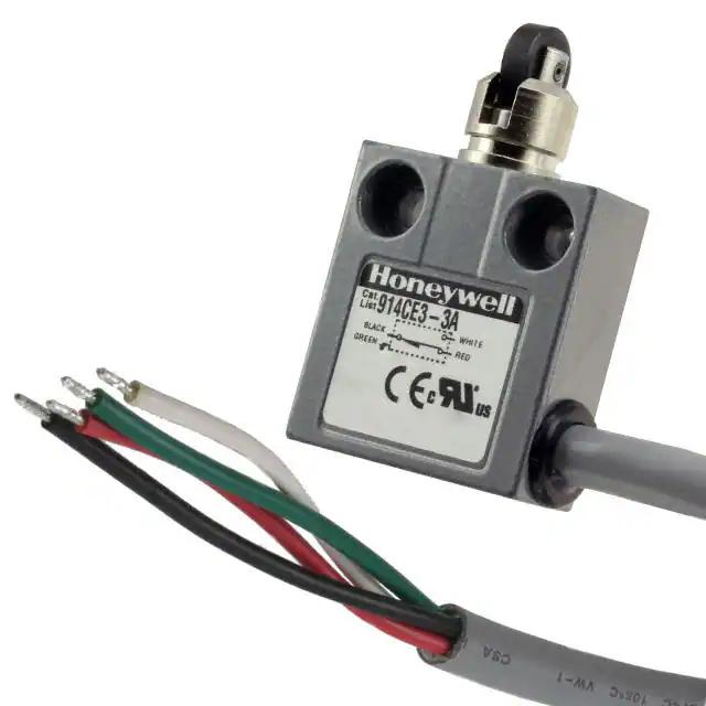This is manufactured by Honeywell Sensing and Productivity Solutions. The manufacturer part number is 914CE3-3A. It has a 1200gf of operating force. It is assigned with possible HTSUS value of 8536.50.9055. The product is rohs compliant. Moreover, it has cable leads terminal style. 28 v of DC voltage rating. The product has 0°c ~ 105°c operating temperature range. The product also provide mechanical stability with 10,000,000 cycles. Whereas, it also has a 0.004" (0.1mm) of differential travel. The product exhibits 240 v of AC voltage rating. The given overtravel figures include 0.118" (3.0mm). While the pretravel value is 0.071" (1.8mm). It is shipped in bulk. It is designed as a on-mom switching function. It has the given operating position of 1.122" (28.5mm). Its typical moisture sensitivity level is 1 (unlimited). It has an integral spdt circuit. Additionally, the product's output is 5a (ac), 3a (dc) It is IP rated with ip66 - dust tight, water resistant. The splendid features of the product include cable length 3'. The product is available in chassis mount configuration. The product 914ce, is a highly preferred choice for users. The product carries cross roller plunger actuator. It carries a release force of 450gf. Moreover, it corresponds to 914ce, a base product number of the product. The product is designated with the ear99 code number