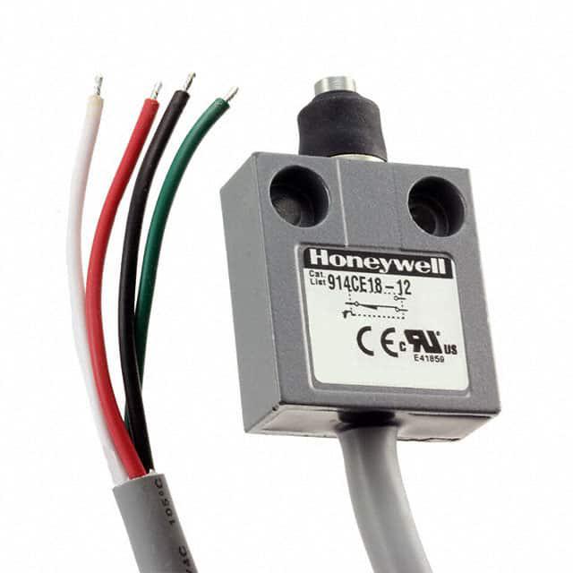 This is manufactured by Honeywell Sensing and Productivity Solutions. The manufacturer part number is 914CE18-12. It has a 2300gf of operating force. It is assigned with possible HTSUS value of 8536.50.9055. The product is rohs compliant. Moreover, it has cable leads terminal style. 28 v of DC voltage rating. The product has 0°c ~ 105°c operating temperature range. The product also provide mechanical stability with 10,000,000 cycles. Whereas, it also has a 0.004" (0.1mm) of differential travel. The product exhibits 240 v of AC voltage rating. The given overtravel figures include 0.118" (3.0mm). While the pretravel value is 0.071" (1.8mm). It is shipped in bulk. It is designed as a on-mom switching function. It has the given operating position of 0.980" (24.9mm). Its typical moisture sensitivity level is 1 (unlimited). It has an integral spdt circuit. Additionally, the product's output is 5a (ac), 3a (dc) It is IP rated with ip66 - dust tight, water resistant. The splendid features of the product include cable length 12'. The product is available in chassis mount configuration. The product 914ce, is a highly preferred choice for users. The product carries round (pin plunger) actuator. It carries a release force of 450gf. Moreover, it corresponds to 914ce, a base product number of the product. The product is designated with the ear99 code number