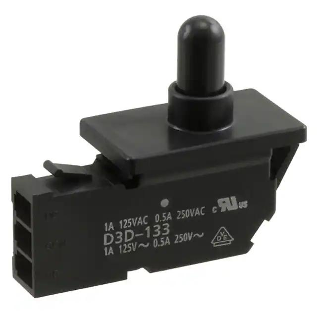 This is manufactured by Omron Electronics Inc-EMC Div. The manufacturer part number is D3D-133. It has a 204gf of operating force. It is assigned with possible HTSUS value of 8536.50.9065. The product is rohs compliant. The product offers long-lasting services of 50,000 cycles. Moreover, it has connector terminal style. The product has -30°c ~ 60°c operating temperature range. The product also provide mechanical stability with 300,000 cycles. The product exhibits 125 v of AC voltage rating. It is shipped in bulk. It is designed as a off-mom switching function. It has the given operating position of 0.472" (12.0mm). Its typical moisture sensitivity level is 1 (unlimited). It has an integral spst-no circuit. It has a long 23 weeks standard lead time. Additionally, the product's output is 1a (ac) It is IP rated with ip00. The splendid features of the product include black actuator. The product is available in panel mount, snap-in configuration. The product d3d, is a highly preferred choice for users. The product carries overtravel plunger actuator. Moreover, it corresponds to d3d, a base product number of the product. The product is designated with the ear99 code number
