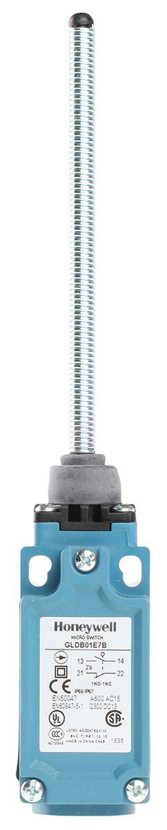 This is IP66 Snap Action Limit Switch Coil Spring Plastic Polyester NO/NC 300V manufactured by Honeywell. The manufacturer part number is GLDB01E7B. It has a 1.3 n of operating force. The product gld, is a highly preferred choice for users. Its accurate length is 68.5mm. The product also features robust glass fibre reinforced thermoplastic housing material. Furthermore, the product is 30.5mm wide. The product comes in 26.35mm depth. The product carries coil spring actuator. The product also provide mechanical stability with 10000000cycles. It has a maximum operating temperature of +85°c. Whereas, the minimum operating temperature of the product is -40°c.