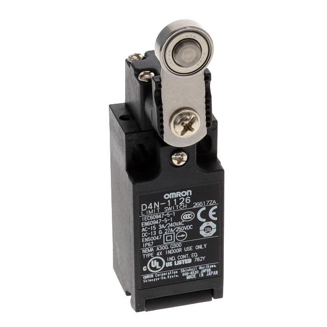 This is manufactured by Omron Automation and Safety. The manufacturer part number is D4N-1126. It has a 510gf of operating force. It is assigned with possible HTSUS value of 8536.50.7000. The product is not applicable. The product offers long-lasting services of 300,000 cycles. Moreover, it has screw terminal terminal style. 250 v of DC voltage rating. The product has -30°c ~ 70°c operating temperature range. The product also provide mechanical stability with 15,000,000 cycles. Whereas, it also has a 14° of differential travel. The product exhibits 240 v of AC voltage rating. The given overtravel figures include 40°. While the pretravel value is 18°. It is shipped in bulk. It is designed as a on-mom, off-mom switching function. Its typical moisture sensitivity level is 1 (unlimited). It has an integral dpst-no/nc circuit. It has a long 26 weeks standard lead time. Additionally, the product's output is 3a (ac), 270ma (dc) It is IP rated with ip67 - dust tight, waterproof. The splendid features of the product include metal lever, bearing roller. The product is available in chassis mount configuration. The product d4n, is a highly preferred choice for users. The product carries side rotary, roller actuator. It carries a release force of 51gf. The product is designated with the ear99 code number