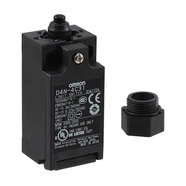 This is manufactured by Omron Automation and Safety. The manufacturer part number is D4N4C31NPT. It has a 663gf of operating force. It is assigned with possible HTSUS value of 8536.50.7000. The product is rohs compliant. The product offers long-lasting services of 300,000 cycles. Moreover, it has screw terminal terminal style. 250 v of DC voltage rating. The product has -30°c ~ 70°c operating temperature range. The product also provide mechanical stability with 15,000,000 cycles. The product exhibits 240 v of AC voltage rating. The given overtravel figures include 0.158" (4.0mm). While the pretravel value is 0.080" (2.0mm). It is shipped in bulk. It is designed as a on-mom, off-mom switching function. It has the given operating position of 0.715" (18.2mm). Its typical moisture sensitivity level is 1 (unlimited). It has an integral 3pst-2nc/1no circuit. It has a long 13 weeks standard lead time. Additionally, the product's output is 3a (ac), 270ma (dc) It is IP rated with ip67 - dust tight, waterproof. The product is available in chassis mount configuration. The product d4n, is a highly preferred choice for users. The product carries round (pin plunger) actuator. It carries a release force of 153gf. Moreover, it corresponds to d4n4c31n, a base product number of the product. The product is designated with the ear99 code number