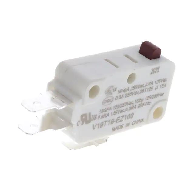 This is manufactured by Honeywell Sensing and Productivity Solutions. The manufacturer part number is V19T16-EZ100. It has a 100gf of operating force. It is assigned with possible HTSUS value of 8536.50.9055. The product exhibits 125 v of AC voltage rating. The product offers long-lasting services of 10,000 cycles. Moreover, it has quick connect - 0.187" (4.7mm) terminal style. 125 v of DC voltage rating. The product has -25°c ~ 125°c operating temperature range. The product also provide mechanical stability with 1,000,000 cycles. Whereas, it also has a 0.016" (0.4mm) of differential travel. The given overtravel figures include 0.039" (1.0mm). While the pretravel value is 0.047" (1.2mm). It is shipped in box. It is designed as a on-mom switching function. It has the given operating position of 0.579" (14.7mm). Its typical moisture sensitivity level is 1 (unlimited). It has an integral spdt circuit. It has a long 10 weeks standard lead time. Additionally, the product's output is 16a (ac), 600ma (dc) It is IP rated with ip40. The product is available in chassis mount configuration. The product v19, is a highly preferred choice for users. The product carries round (pin plunger) actuator. It carries a release force of 15gf. Moreover, it corresponds to v19t16, a base product number of the product. The product is designated with the ear99 code number