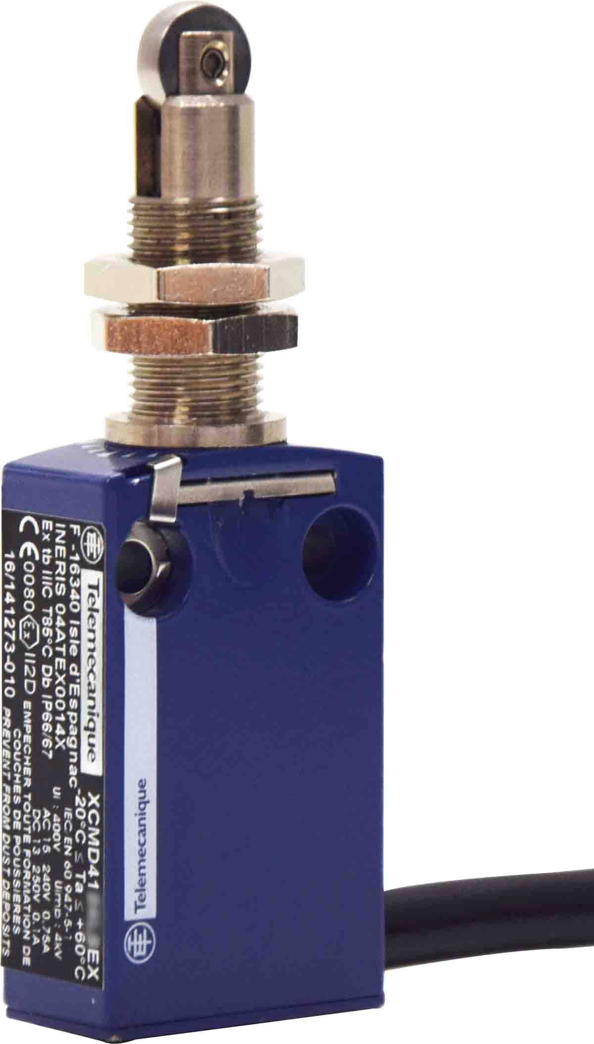 This is Schneider Electric Snap Limit Switch - Plastic 2NC/2NO Roller IP66 IP67 manufactured by Telemecanique Sensors. The manufacturer part number is XCMD41F2L5EX. The product also features robust plastic housing material. The product carries roller actuator.