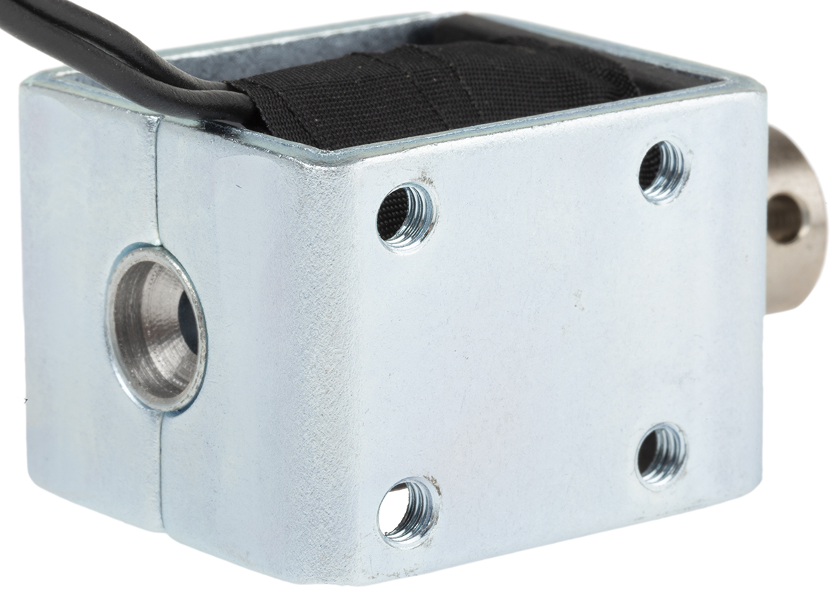 This is Pull Action DC D-Frame Solenoid 24 V manufactured by RS Pro. The manufacturer part number is 177-0123. The given dimensions of the product include 35.5 x 25.4 x 31.8 mm.