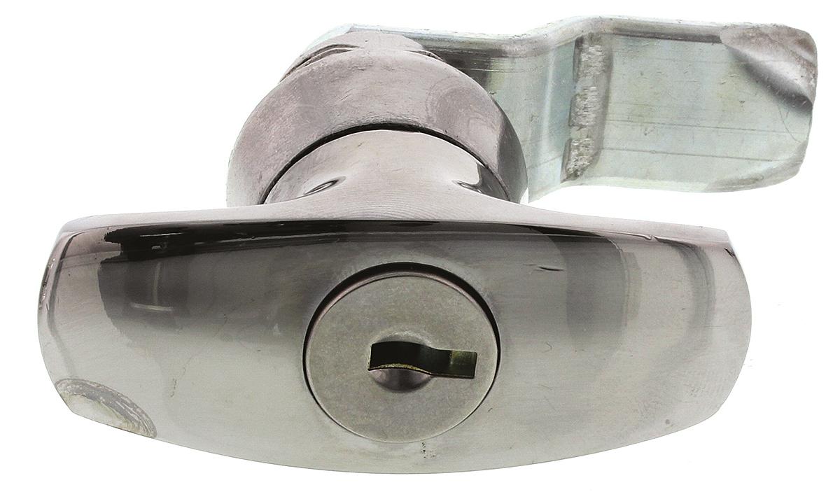 IP65 T and L Handles Bright chrome plated handles to fit panels up to 10mm thick Cam provides a slide compression fit and operates through 90° (adjustable) Key removable in locked/unlocked position 200 different key combinations Supplied with 0.3mm nitrile gasket, fixing nut and 2 keys