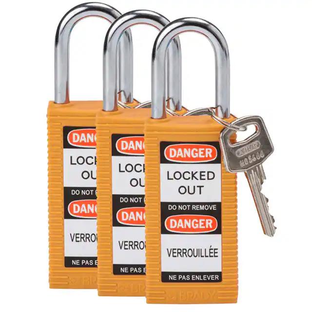 This is manufactured by Brady Corporation. The manufacturer part number is 123418. It is assigned with possible HTSUS value of 8301.10.6080. It is shipped in bulk. The product is not applicable. In addition, it is reach affected. Its typical moisture sensitivity level is not applicable. It has a long 4 weeks standard lead time. The product is designated with the ear99 code number