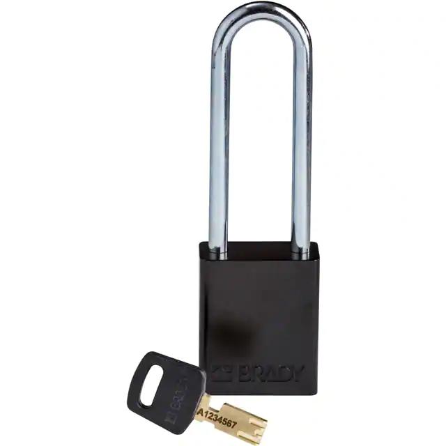This is manufactured by Brady Corporation. The manufacturer part number is ALU-BLK-76ST-KD. It is assigned with possible HTSUS value of 8301.10.9000. It is shipped in bulk. The product is not applicable. In addition, it is reach affected. Its typical moisture sensitivity level is not applicable. Moreover, it corresponds to alu-blk, a base product number of the product. It has a long 4 weeks standard lead time. The product is designated with the ear99 code number