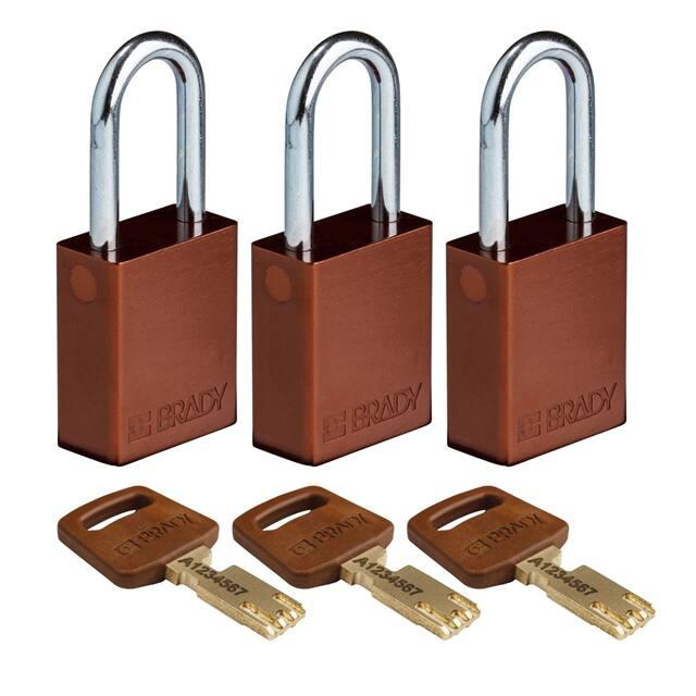 This is manufactured by Brady Corporation. The manufacturer part number is ALU-BRN-38ST-KA3PK. It is assigned with possible HTSUS value of 8301.10.6080. It is shipped in bulk. The product is not applicable. In addition, it is reach affected. Its typical moisture sensitivity level is not applicable. Moreover, it corresponds to alu-brn, a base product number of the product. It has a long 4 weeks standard lead time. The product is designated with the ear99 code number