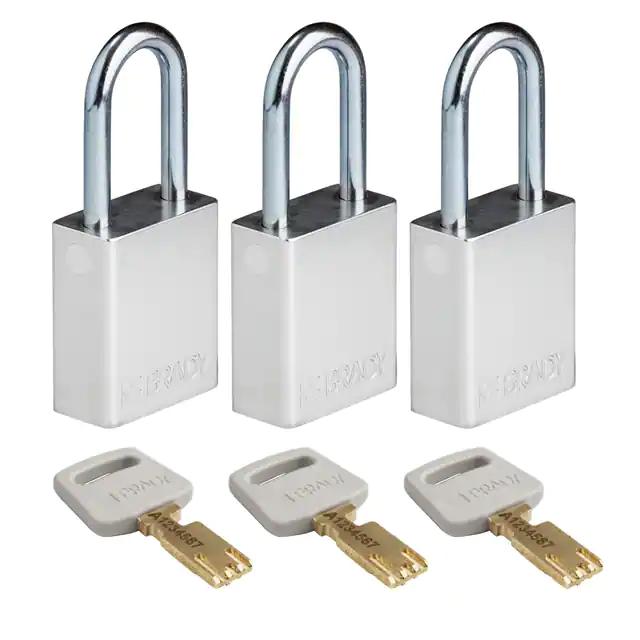 This is manufactured by Brady Corporation. The manufacturer part number is ALU-SLV-38ST-KA3PK. It is assigned with possible HTSUS value of 8301.10.6080. It is shipped in bulk. The product is not applicable. In addition, it is reach affected. Its typical moisture sensitivity level is not applicable. Moreover, it corresponds to alu-slv, a base product number of the product. It has a long 4 weeks standard lead time. The product is designated with the ear99 code number