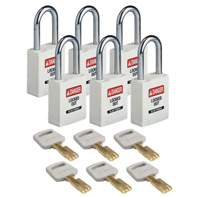 This is manufactured by Brady Corporation. The manufacturer part number is NYL-WHT-38ST-KA6PK. It is assigned with possible HTSUS value of 8301.10.6080. It is shipped in bulk. The product is not applicable. In addition, it is reach affected. Its typical moisture sensitivity level is not applicable. Moreover, it corresponds to nyl-wht, a base product number of the product. It has a long 4 weeks standard lead time. The product is designated with the ear99 code number