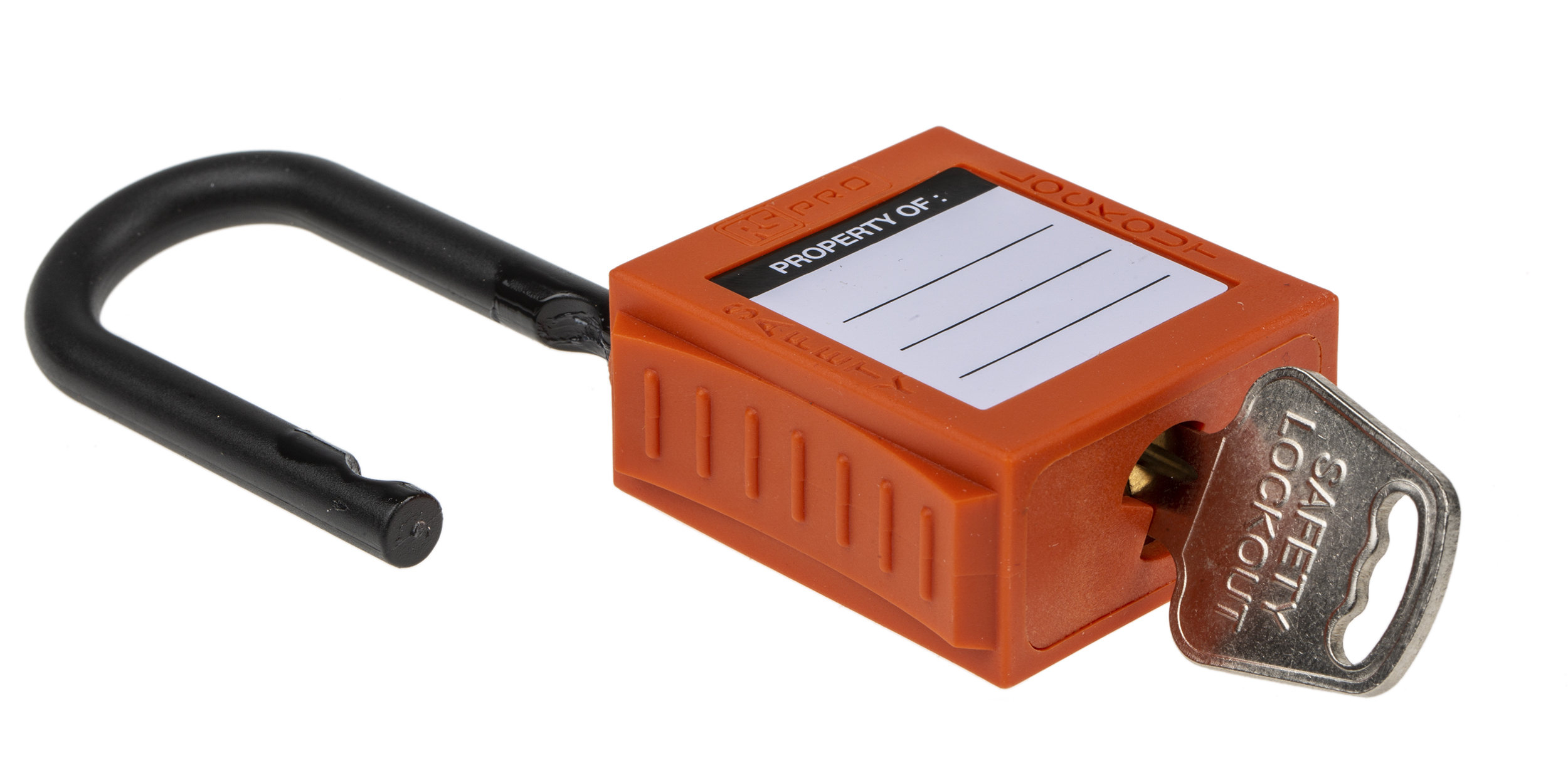 This is All Weather Safety Padlock 38mm manufactured by RS PRO. The manufacturer part number is 196-3761. The product is made from highly stable and reliable nylon. It comes in safety lockout configuration.