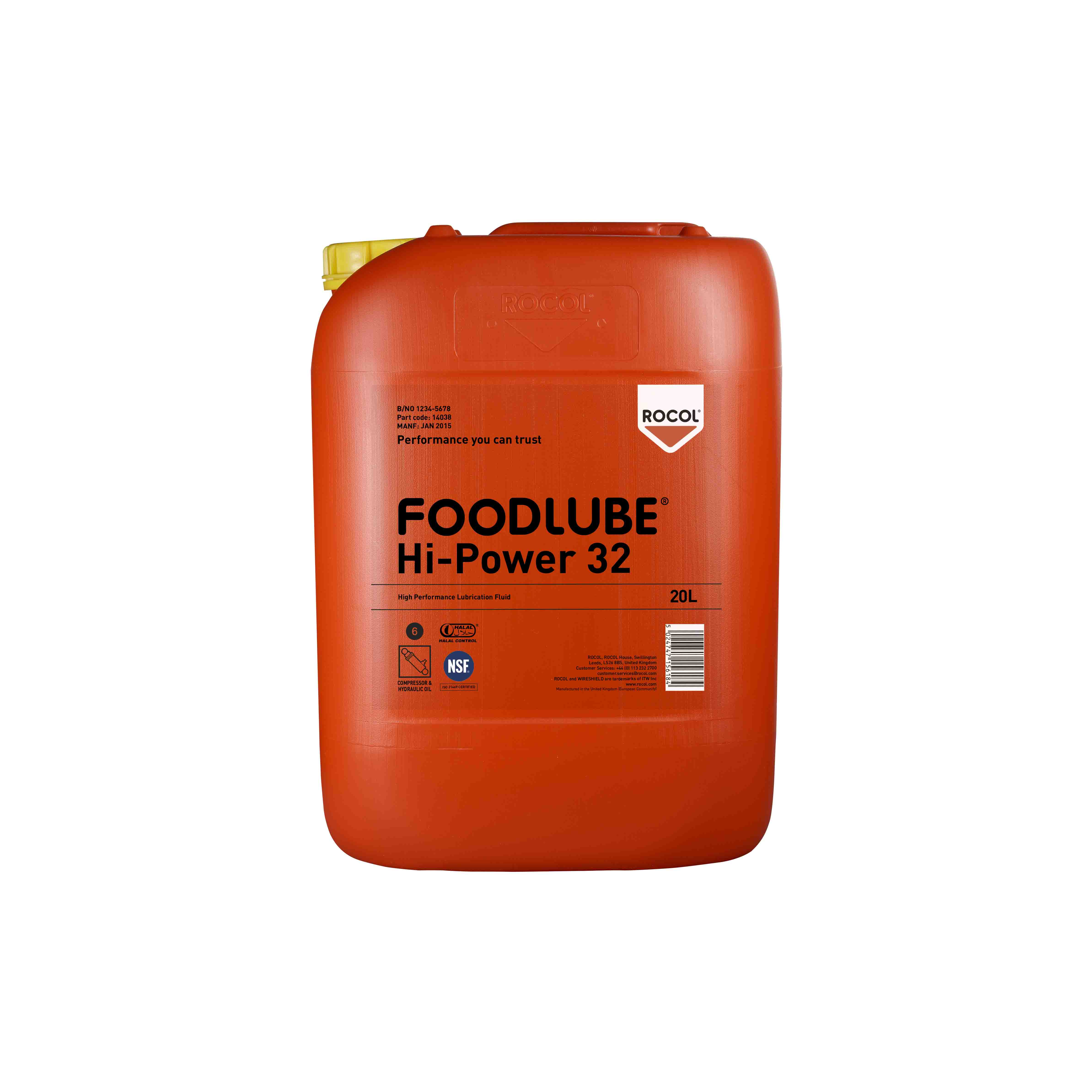 This is Lubricant 20 L Can Foodlube Hi-Power Oil manufactured by Rocol. The manufacturer part number is 15895. It comes in multipurpose lubricant configuration.