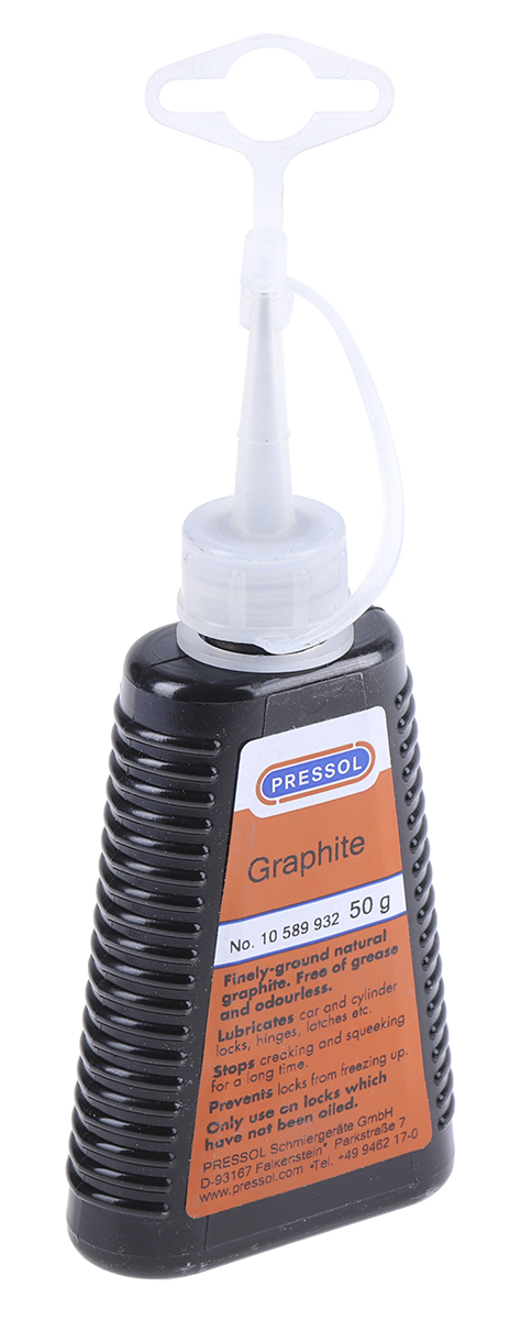 This is Pressol Lubricant 50 g Graphite Bottle manufactured by RS PRO. The manufacturer part number is 703-1086. It comes in multipurpose lubricant configuration.